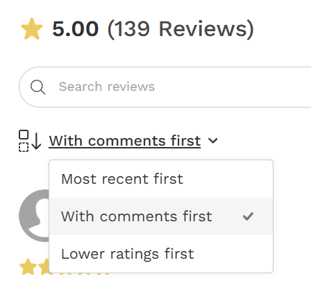 You can choose how to sort your reviews by selecting an option from the drop-down menu. Viewing Lower ratings first is helpful for calculating aggregate ratings. Note: Although blocking a user does not prevent that user from submitting a review, the visibility of reviews can be affected when users block one another.