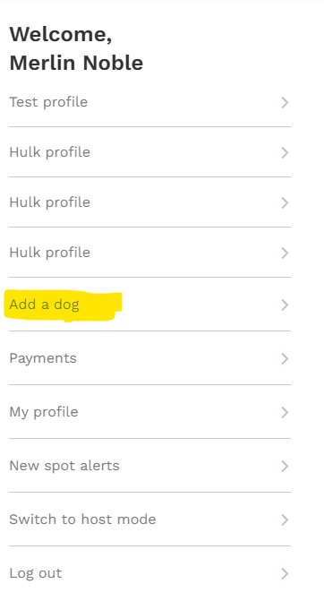 - To create a new dog profile, choose 'Add dog' from the options on the left of the page and start creating a profile for your dog.