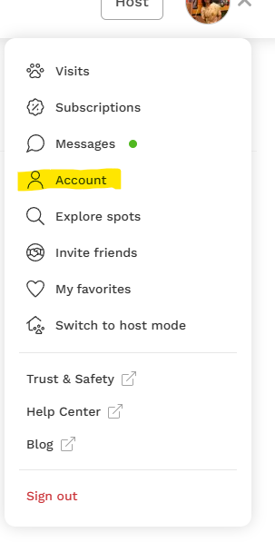 As a user, you can create a profile for your dog from your account from both the mobile app and the website app. Log into your account and choose 'Account' from the drop-down next to your profile icon.