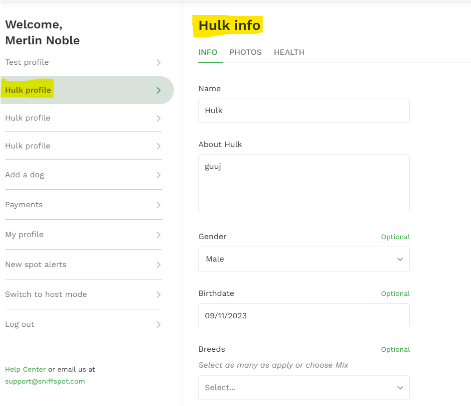 - To edit your dog profile, choose your dog profile and make the changes and click 'Done'.